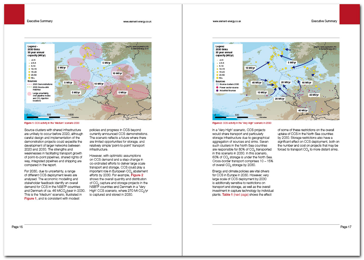 Inner pages from, 'One North Sea' with explanatory graphics and figures.